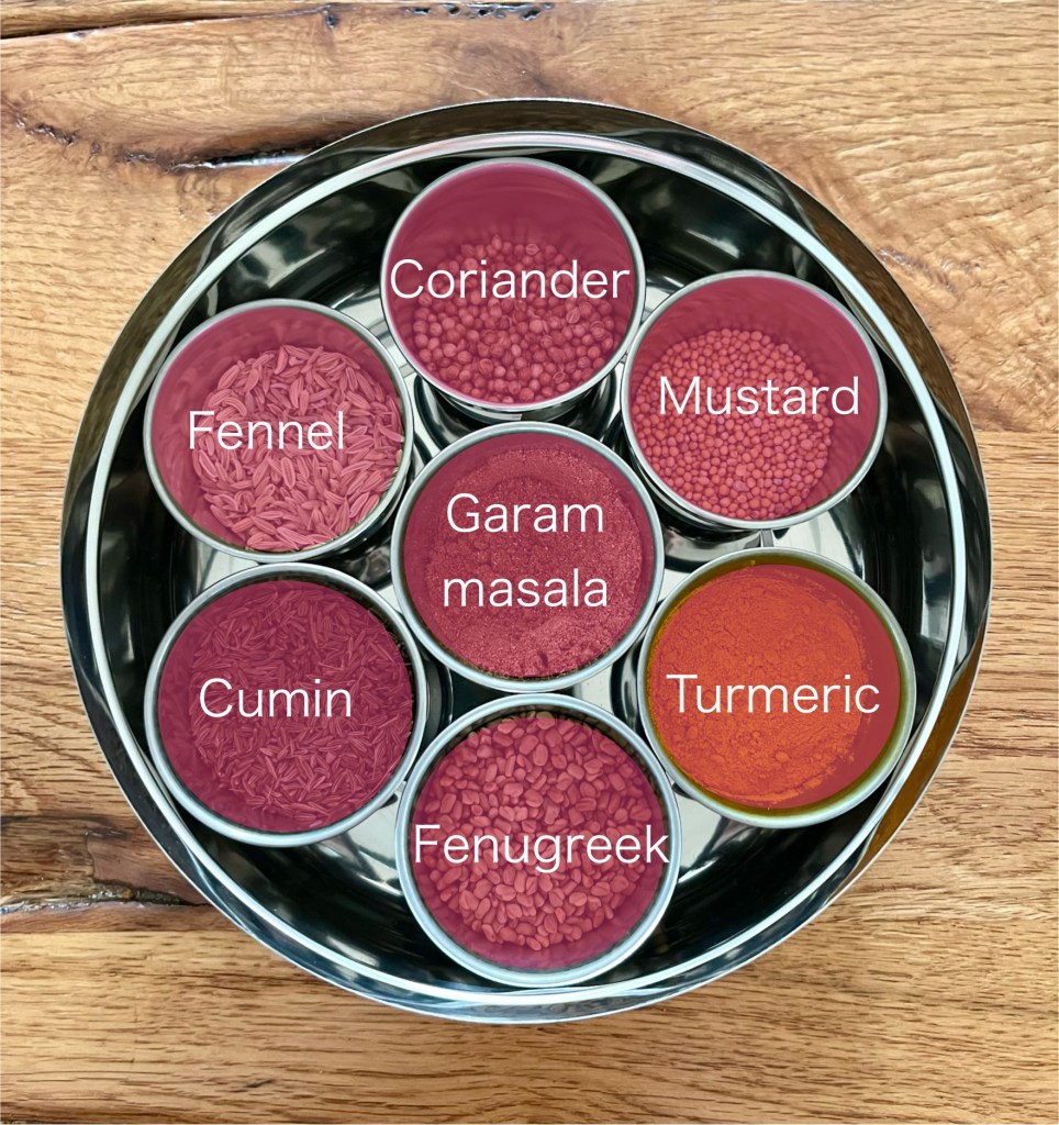 The spice tin is a handy addition to your kitchen cupboard. In general, you fry whole seeds in oil before adding whatever is to be cooked. And add ground spices towards the end of cooking.